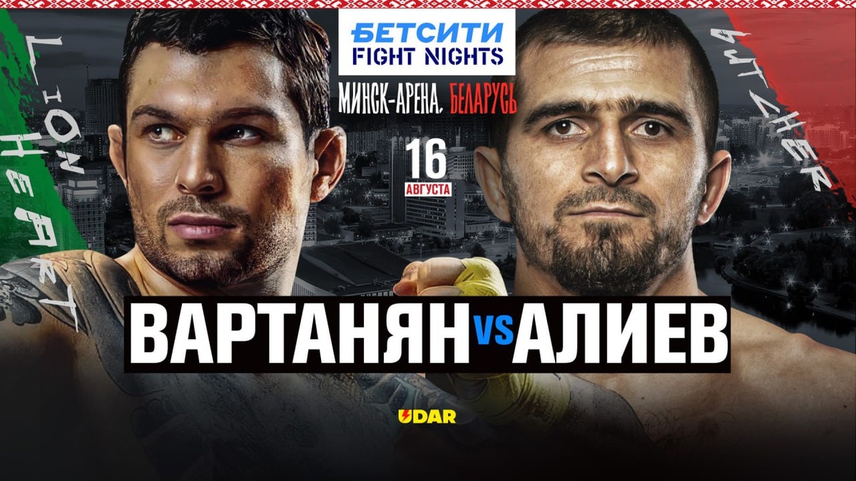 ⚡️📺Вартанян и Алиев: где смотреть самый обсуждаемый бой августа? Теперь мощные турниры в прямом эфире телеканала UDAR еще ближе! Турниры TOP DOG, RCC, Fight Nights и другие — в прямом эфире VK Видео всего за 50 рублей в месяц! 🚀Прямой эфир турнира FIGHT NIGHTS: Вартанян vs Алиев трансляция из Минска. 16 августа, начало в 18:00 по Москве. 📺Ссылка на трансляцию - https://vk.com/video-180162102_456247508