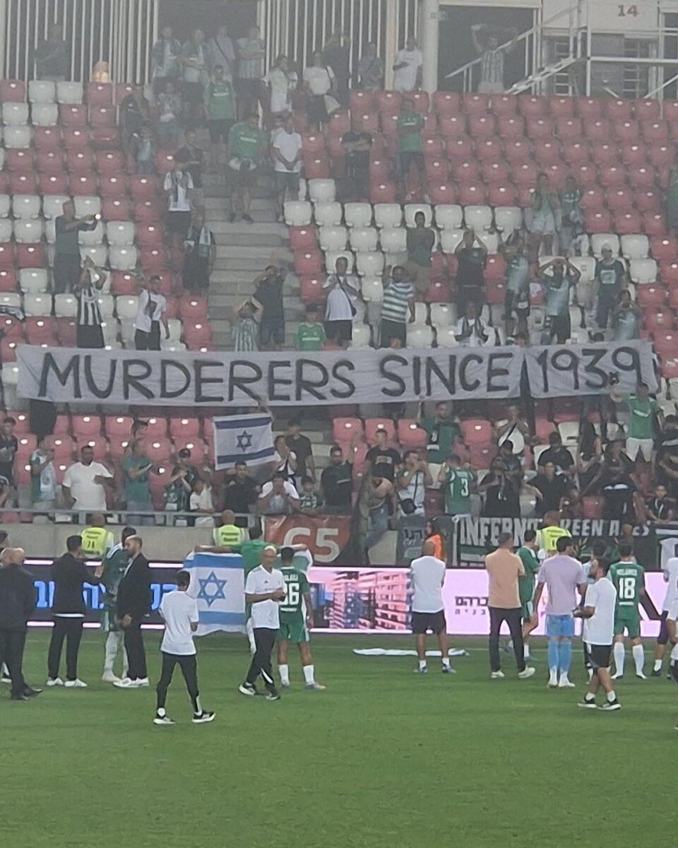 «Убийцы с 1939 года» Болельщики «Маккаби» из Хайфы во время ответного матча квалификационного раунда с «Ракувом» растянули баннер, оскорбляющий Польшу. «Убийцы с 1939 года», — гласила надпись на английском языке. Президент Польши Кароль Навроцки раскритиковал фанатов «Маккаби». «Скандальный баннер оскорбляет память польских граждан, жертв Второй мировой войны, включая 3 млн евреев. Неописуемая глупость», — написал политик в соцсетях. «Маккаби» в этом матче уступил со счётом 0:2. «Ракув» одержал победу по сумме двух встреч и вышел в следующий раунд. @russian_rt_sport