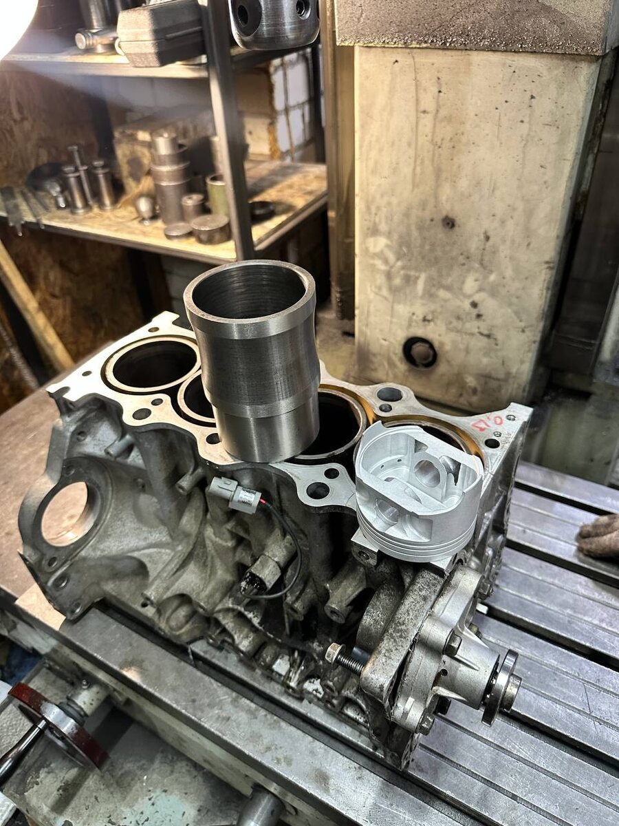 ⁉️Вопрос⁉️ Привезли вот такой блок на гильзовку. Гильза на фото, блок тоже. Поршни кованые. Теперь вам вопросы; Что это за гильзы? Как это нужно делать? Какой зазор на ковку? Жду ответу в комментарии!! И хороших всем выходных🎉 #гильзы #вопросы #поршни