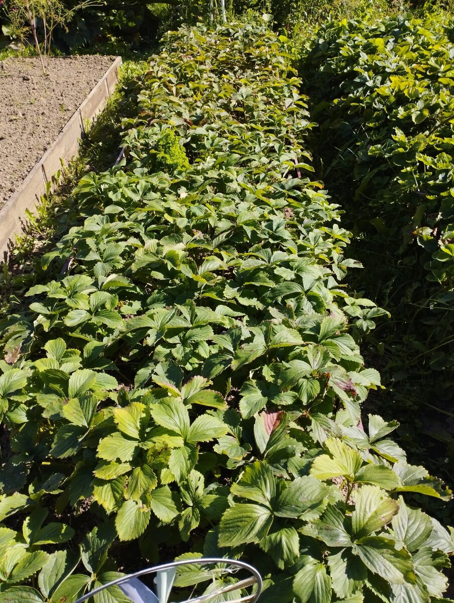 И останется у меня последняя грядка клубники с усами, на которой растёт как будто земклуника Купчиха. Если дождя не будет, дня за два - три я её доделаю.