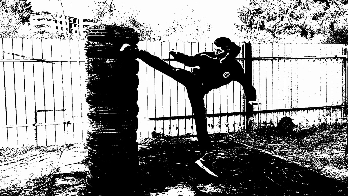 Сотни раз видел на экране как корейцы бьют вертушку в прыжке. Ура маваши-гери многие у нас били, но в прыжке никто не бил. Я на вдохновении весь вечер прыгал. С передней ноги бить ура маваши-гери я научился, и даже опробовал удар в спарринге с Русланом, а потом на тренировках у Володи. Но вот ударить в прыжке с разворота никак не получалось.