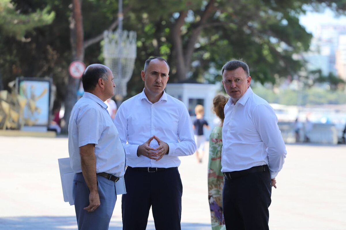 "На улице Ленина продолжается второй этап реконструкции пешеходной зоны: от улицы Островского до Центральной площади. Работы охватывают более 4 000 кв. м — здесь обновляется мощение, освещение и коммуникации. Также оценили ход работ на объекте «Сад роз». Новый сквер благоустраивается на участке от улицы Ленина до пляжа «Спортивный». Здесь также укладывают брусчатку, демонтируют старое покрытие, сохраняют существующие зелёные насаждения, добавят новые. Кроме того, запланированы скамейки с ротондами".