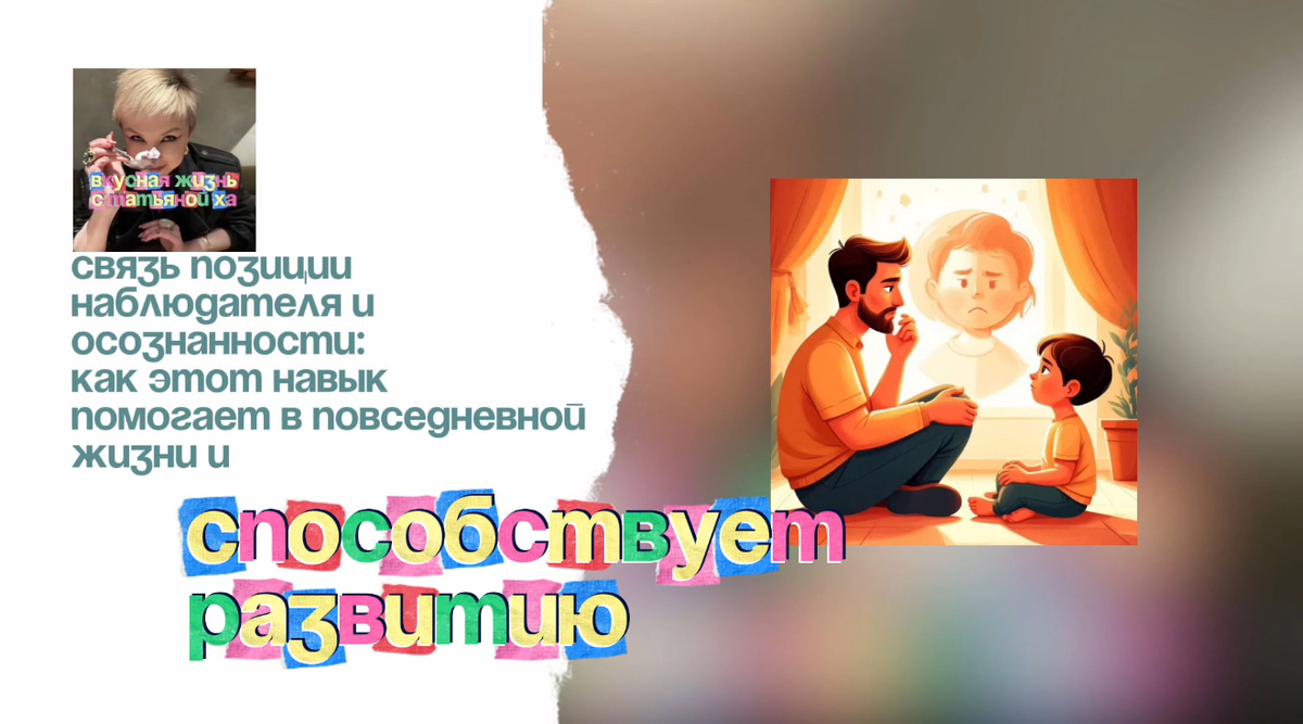 В современном мире, наполненном информацией, стрессами и постоянными задачами, умение оставаться в состоянии осознанности становится одним из ключевых навыков личностного роста. Одним из важнейших аспектов этой способности является позиция наблюдателя — умение смотреть на свои мысли, чувства и действия со стороны, не погружаясь в них полностью. Эта практика помогает не только лучше понимать себя, но и значительно улучшает качество взаимодействия с окружающими, особенно с детьми. Что такое позиция наблюдателя? Позиция наблюдателя — это способность отделить себя от своих эмоций, мыслей и реакций. Вместо того чтобы автоматически реагировать на ситуацию или эмоцию, человек учится замечать их, анализировать и выбирать наиболее осознанное действие. Это как смотреть на свою жизнь со стороны, не теряя при этом связи с внутренним состоянием. Как эта позиция связана с осознанностью? Осознанность — это состояние полного присутствия в моменте, когда мы замечаем свои мысли, чувства и телесные
