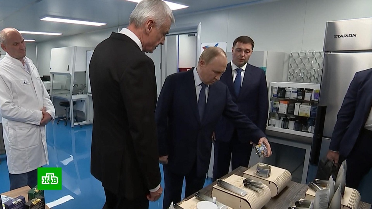 [ Смотреть видео на сайте НТВ ] Самолет Владимира Путина по пути на Аляску совершил сегодня посадку в Магадане. Как отметили в Кремле, с учетом географии нашей страны, президент никогда не упускает возможности ознакомиться с ситуацией в регионах. Визит Владимира Путина в Магадан начался поздним вечером по местному времени. Первым объектом стал завод по изготовлению рыбного жира. Для производства используют сардины и сельдь из Охотского моря. Завод является наглядным примером успешного импортозамещения. Открыли его несколько лет назад вместе с коллегами из Южной Кореи. Зарубежные станки устанавливали и запускали иностранные специалисты, однако из-за санкций все связи были разорваны. Дмитрий Лычковский, заместитель директора по производству завода «Омега-Си»: «Мы переняли у них технологию, в дальнейшем, как оказалось, технология была не самая совершенная. Мы многое изменили, много оборудования мы переделывали. Мы адаптировали завод под то, чтобы он выпускал все виды рыбного жира высокой
