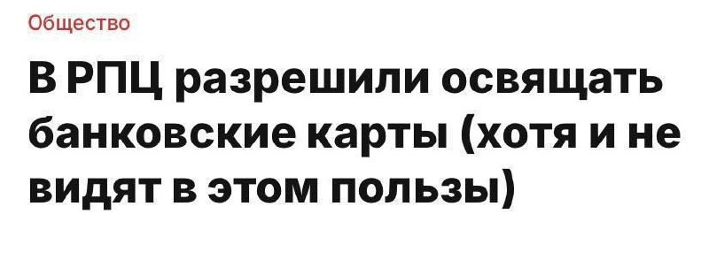 💳 При этом в РПЦ заявили, что освящение банковских карт не поможет стать богаче