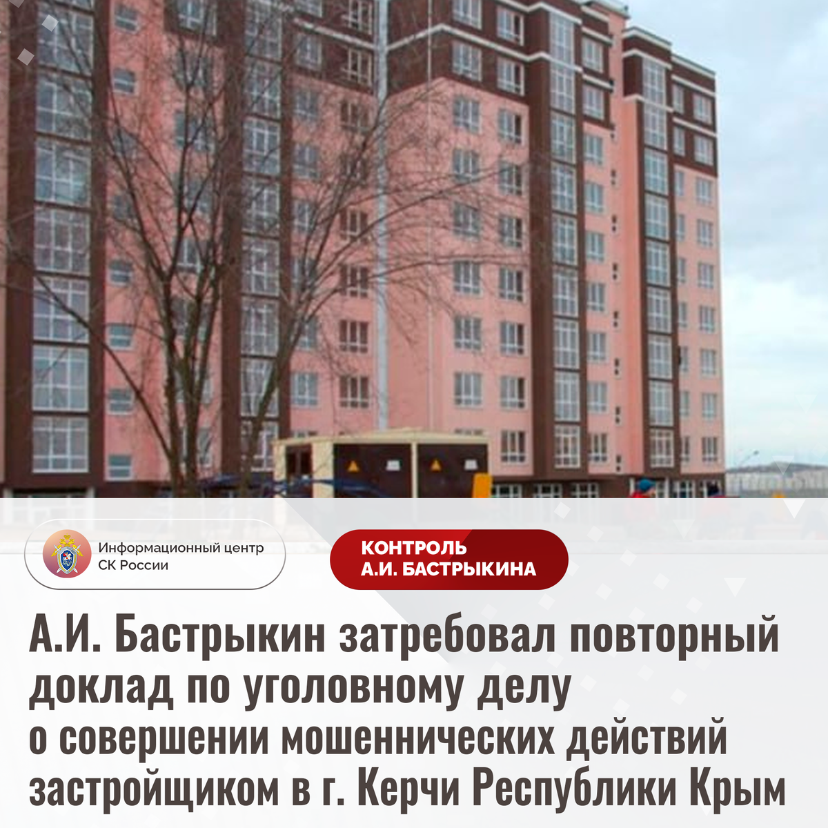 А.И. Бастрыкин затребовал повторный доклад по уголовному делу о совершении мошеннических действий застройщиком в г. Керчи