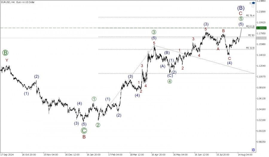 https://basechop.ru/wordpress/?p=54283 Рынок по Евродоллару в долгосрочной перспективе может формировать крупную бычью коррекция (B), которая принимает форму стандартного зигзага A-B-C. На сегодняшний день полностью завершены только первые две его части – импульс A и коррекция B. На последнем участке графика мы можем наблюдать развитие бычьей волны C, которая, по всей видимости, принимает форму импульса. На текущий момент завершены первые четыре его части – подволны [1]-[2]-[3]-[4]. В процессе построения бычья финальная подволна [5]. Большая вероятность, что быки внутри волны [5] смогут отправить рынок в область уровня 1.189. На указанной отметке величина крупной импульсной волны [5] составит 61/8% по расширению Фибоначчи от предыдущей импульсной волны [3]. Таким образом, при продолжении роста, стоит рассмотреть открытие длинных позиций с текущего уровня, с целью забрать прибыль на указанной отметке. После достижения уровня 1.189, ожидается смена тренда, а именно ожидается развитие…
