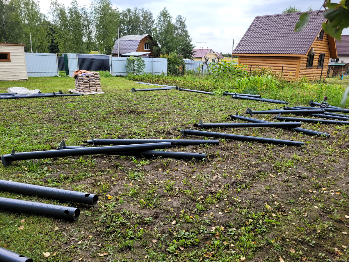 Сначала была мечта... Следующий этап: фундамент для дома. Для новых читателей: строю дом своей мечты - не большой и не маленький, а в самый раз для семьи из 5 человек. Думала, думала, обшарив весь интернет и остановилась на винтовых сваях. Перечитала кучу материалов за и против. Дом у нас каркасный, то есть не очень тяжёлый, поэтому выбранные сваи вполне подходят. Я не строитель, в терминах слаба. Если где не так выражаюсь, да простят меня знатоки этого дела. Сначала к нам приезжали люди, чтобы измерить уровень, есть ли перепад и делали пробное бурение. У нас перепад 45 см, поэтому сваи разной длины. А после этой процедуры приехали устанавливать уже собственно сами сваи. Сваи металлические винтовые с оголовком и песко-цементом. Часть свай длиной 2,5 метра и из-за перепада уровня 11 свай длиной 3м Маленькая специальная техника вкручивала сваи, шустренько так бегала на своих гусеницах и топтала мне травку. Вот видим лежит песко-цемент. Его насыпали внутрь свай. Два мешка осталось, отдал