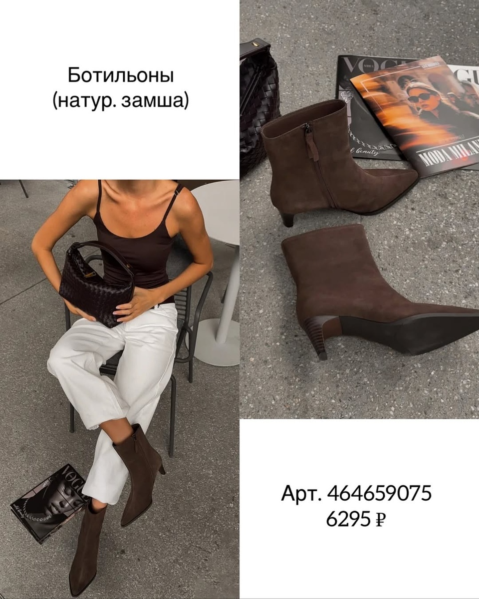 1) Арт. 464659075 — ботильоны из нат. замши, 6 295 ₽