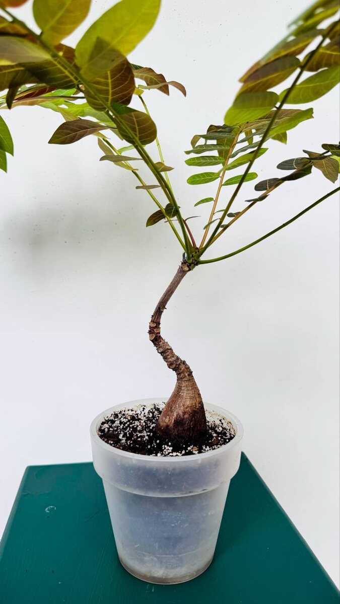 🥔Phyllanthus mirabilis — звезда прошлого года, трендовая каудексная диковинка, за которой охотились А теперь признавайтесь — у кого он жив-здоров, а у кого тихо превратился в палочку для суши?😃 Мой решил стать бонсаем: изогнулся по ветру на склоне в Гималаях. Регулярно отрезаю старые листья и жду, когда он начнет «жепку» наращивать У кого как поживает этот красавчик?