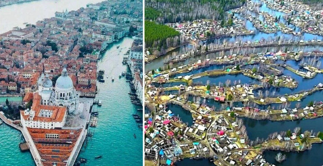 Но жизнь рядом с водой имеет свои особенности. Весеннее половодье может поднять уровень реки на два метра – такой показатель зафиксировали в 2016 году. Мало какой берег способен сдержать мощный поток талых вод, поэтому многие дома здесь строят на сваях, что ещё больше усиливает сходство с настоящей Венецией.