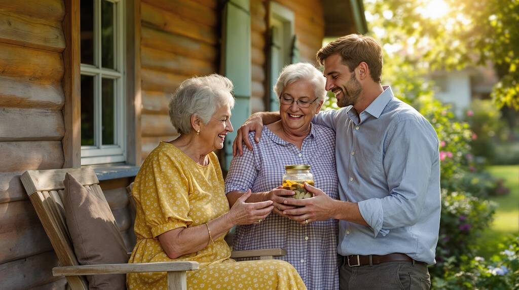 Он замер, не решаясь взять банку. В этот момент странно защемило. Перед глазами — всё: хохочущие соседки, рыжий кот на заборе, запах укропа, даже крепкие руки мамы, ловко прибирающей после завтрака...