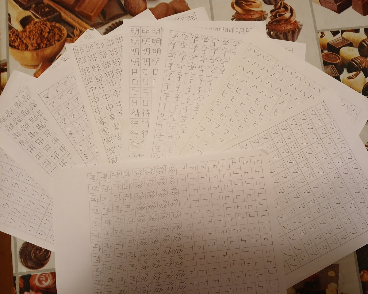 Писала иероглифы до умопомрачения. Сейчас переписываю в тетрадь предложения. Я устала настолько, что придумала новый метод обучения. Наплевать, что ничего не понимаю, ничего не могу запомнить и конструировать грамматику. Буду просто в среде. Просто пишу (не задумываясь о смысле), просто слушаю книги (на японском, не вникая), просто читаю слоги (не складывая в слова). В общем, плыву по течению, больше ничего придумать не могу... Одно радует: благодаря (бессмысленному) чтению легко и быстро читаю тексты на хирагане, с катаканой чуть посложнее, она не так часто встречается, а иероглифы (в детской литературе) почти все подписаны. Читаю легко! Только не понимаю ничего.)) Не знаю, сколько я ещё протяну в напряжении воли, когда придёт понимание...