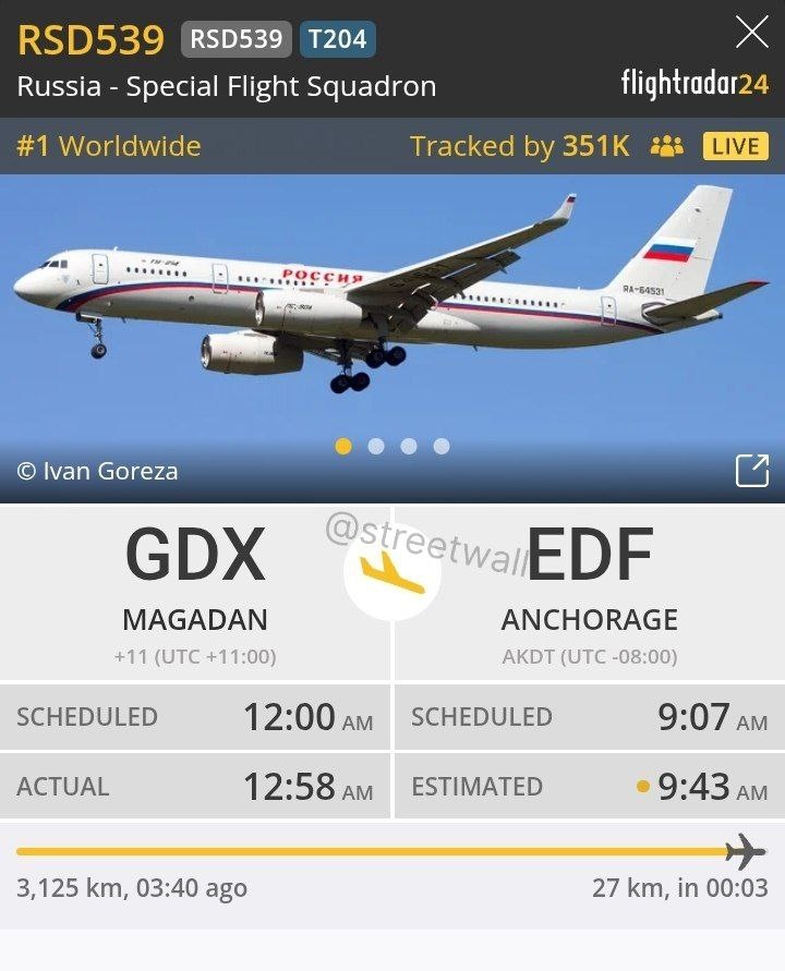 Путин скоро приземлится в Анкоридже, за его полетом наблюдают более 350 тысяч человек