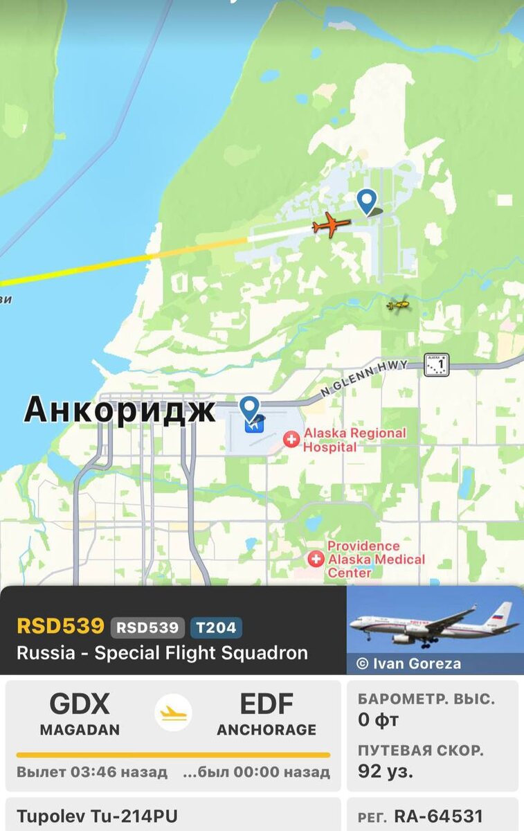 ⭐️ Журналист Зарубин опровергает информацию о приземлении самолета Путина в Анкоридже.