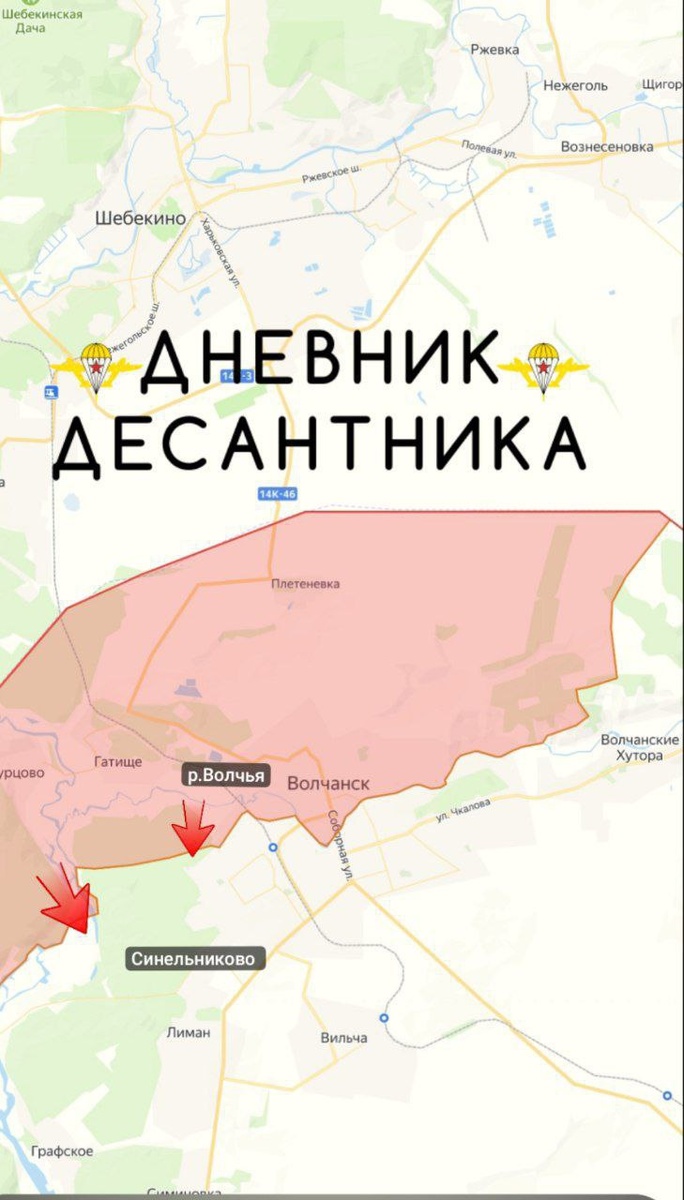 🪖 Харьковское направление На данном направлении продолжаются ожесточенные бои на левом берегу р. Волчья, где ВС РФ продолжают расширение плацдарма. Ситуация не из лучших складывается для ВСУ на востоке города. В лесу возле Синельниково противник пытается контратаковать силами прибывших подкреплений. Волчанский участок На левом берегу р. Волчья наши подразделения, отразив одну контратаку ВСУ, продвинулись ещё на 200 м. и заняли два технических здания. Есть продвижение в направлении н.п Тихого. В лесу западнее Синельниково ВСУ переправили резервы и провели две контратаки. Обе атаки отражены ВС РФ, штурмовые группы противника отошли на исходные позиции. Потери противника 🪖 Волчанский участок: 💥 1 ББМ "Хамви"; 💥 3 миномета; 💥 8 пикапов и два багги; 💥 7 ПУ БПЛА; 💥 5 станций спутниковой связи "Старлинк"; 💥 4 антенны связи; 💥 5 БПЛА самолетного типа; 💥 3 БПЛА типа "Баба Яга"; 💥 2 склада матсредств; 💥 1 склад БП. ▫️ Дневник Десантника