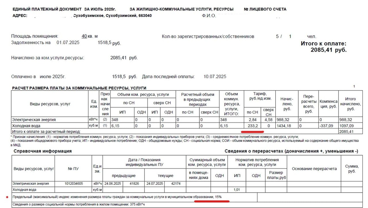 Житель села Сухобузимское обратился в редакцию с недоумением: вопреки обещаниям о повышении тарифа на холодную воду не более чем на 15%, он вырос сразу на 79%. В июне кубометр воды стоил 130,72 рубля, а в июле уже 233,2 рубля. При этом в квитанциях указано, что предельный рост тарифов не должен превышать 15%. Ситуация интересна тем, что вода в Сухобузимском и так втрое дороже, чем в Красноярске, где кубометр стоит всего 38 рублей 6 копеек. "Течёт она, что ли, по золотым трубам или из артезианской скважины глубиной больше 100 метров?" — возмущается житель села. Возникает логичный вопрос: почему тарифы растут так резко, а разница с городскими ценами остаётся такой большой? Жители требуют объяснений.