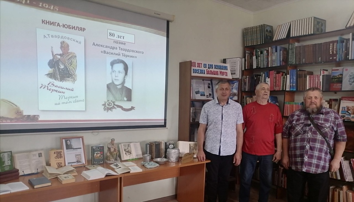 В Большемуртинской центральной библиотеке прошел вечер-портрет «По праву памяти живой», посвященный 115-летию со дня рождения Александра Трифоновича Твардовского и 80-летию его знаменитой поэмы «Василий Тёркин». Сотрудники библиотеки рассказали о творческом пути писателя, создании поэмы «Василий Теркин», о том, как менялся её герой на протяжении войны и как сам писатель, пройдя фронтовыми дорогами, вложил в Тёркина частицу души русского солдата.За это произведение, получившее всенародное признание, 26 января 1946 года поэту была присуждена Сталинская премия первой степени. Строчки поэмы, которые хочется перечитывать снова и снова, звучали в зале на протяжении всего мероприятия. Гости декламировали отрывки, знакомились с книжной выставкой и делились впечатлениями от прочтения этого знаменитого произведения. Источник: Большемуртинская центральная библиотека