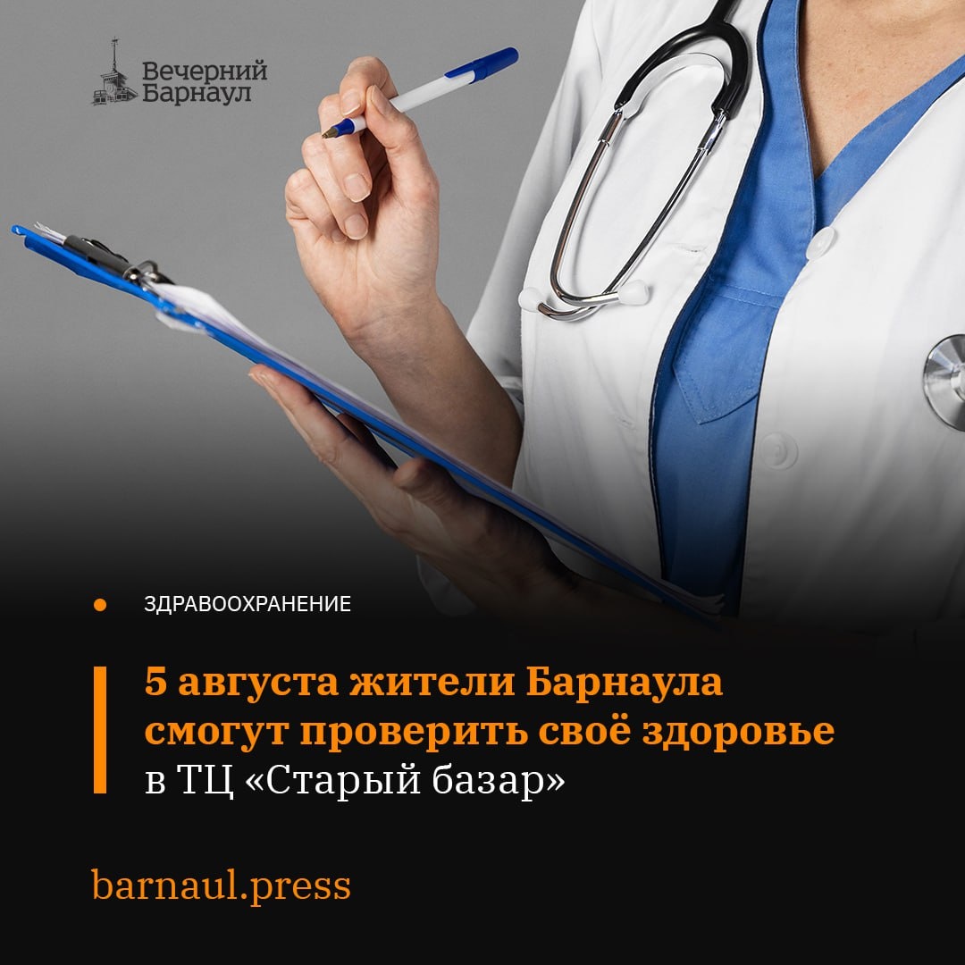 5 августа с 11:00 до 16:00 в барнаульском ТЦ «Старый базар» на улице Мало-Тобольской, 23 пройдёт бесплатное выездное медицинское