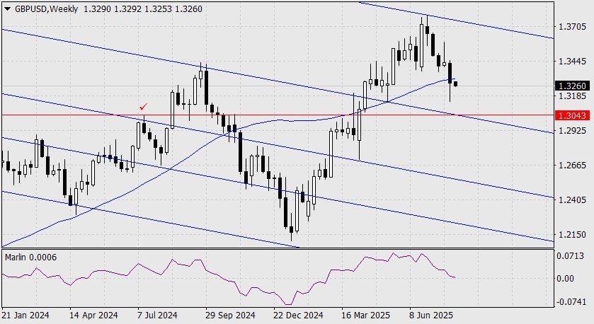 На недельном графике фунт стерлингов должен выполнить очень важную задачу – закрепиться под линией Крузенштерна