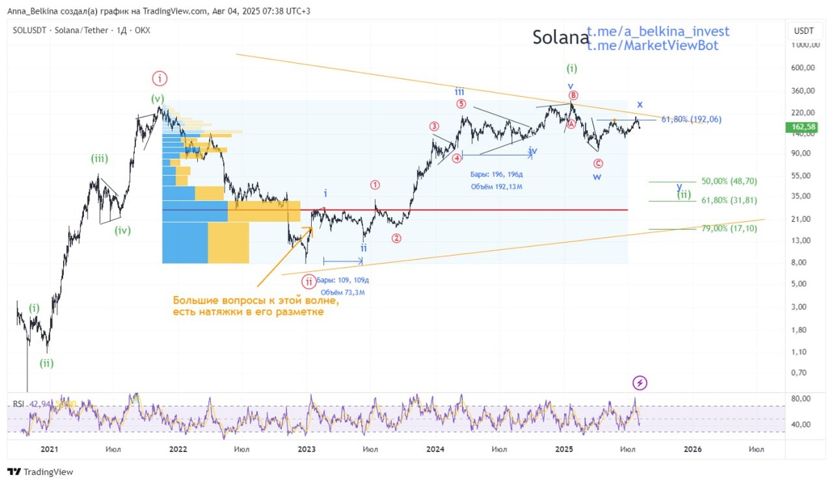 #Solana #1D Солана В развитии по-прежнему волна (ii) of [iii] глобального импульса в виде двойного зигзага, в котором формируется (или уже поставлена) промежуточная волна х of (ii). Приоритет движения – вниз. Не является ИИР 💪 Бот Закрытого Канала (подписаться из-за границы, пишите личным сообщением)
