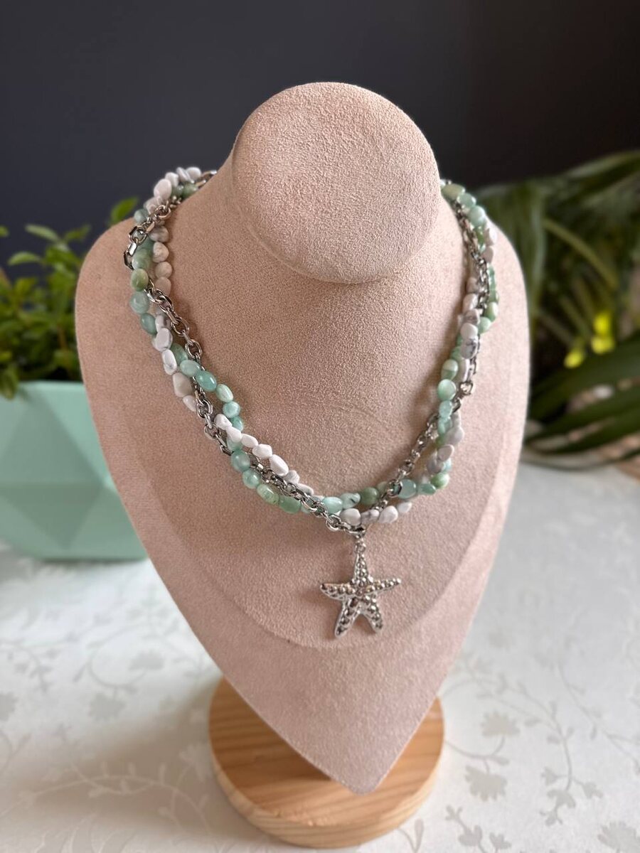 И снова летняя☀️новинка! Ведь впереди целый месяц лета и череда еще неотгуленных отпусков 🌊 Многослойное колье из кахолонга и бирюзового ангелита с кулоном на выбор — «морская звезда» или «солнышко». Цена: 5590₽ Также доступно с позолоченной фурнитурой. Для заказа пишите в WhatsApp по ссылке: https://wa.me/79220146086 Внимание‼️ Это единственный номер телефона для оформления заказа👆🏻