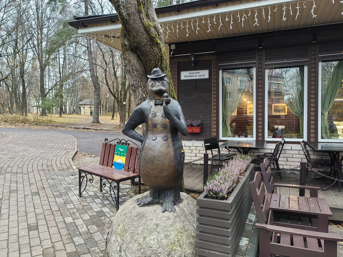 В предыдущей статье о поездке в Зеленогорск я мимоходом написала пару строк о кафе "Пингвин с мороженым", но потом мне показалось, что оно заслуживает маленького отдельного рассказа. Во-первых, оно расположено в сквере, имеет небольшое помещение внутри и много мест снаружи с мягкими подушками. Я сразу подумала, что из-за этих подушек у персонала достаточно забот. На ночь надо убирать, да и дождь у нас не редкость. Во-вторых, мы случайно познакомились с хозяйкой кафе, которая сидела на улице напротив той заветной комнаты, которую мы искали вместе с еще одной посетительницей. Хозяйка представилась и любезно объяснила нам, как туда попасть, пока дочь ходила за кодом, она рассказала нам, что девочкой ходила это в кафе-мороженое и мечтала в нем работать и вот .... работает Кафе-мороженое появилось в Зеленогорске приблизительно в 1970-е годы и называлось «Мороженое» или «Кафе-мороженое». Внутри по диагонали стоял прилавок, за которым продавали мороженое в развес. Столики были как вну