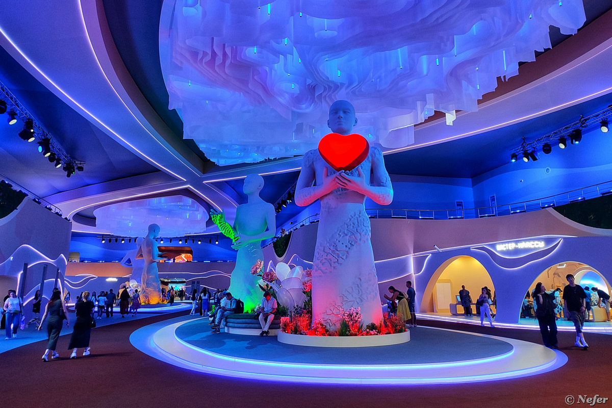 Пространство поделено на четыре зоны: любовь, здоровье, знания и технологии. Идея такая: технологии, наука, культура и