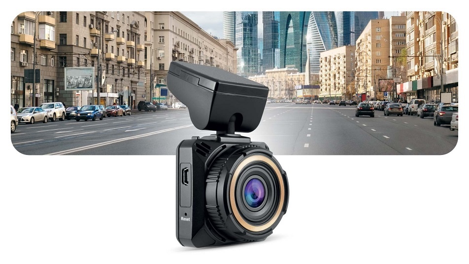 Передняя камера охватывает угол 170°. В кадре остаётся не только дорога перед машиной, но и соседние полосы. Благодаря Wi-Fi можно посмотреть записи с телефона, не вынимая карту памяти.