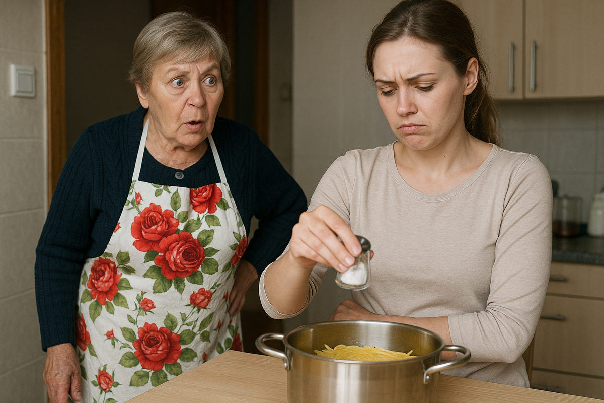 — Лена, а зачем ты солишь макароны после того, как слила воду? — спрашивает Зинаида Петровна, входя на кухню в своём фирменном халате в розочку. — Соль же не впитается! Надо солить воду, пока макароны варятся.