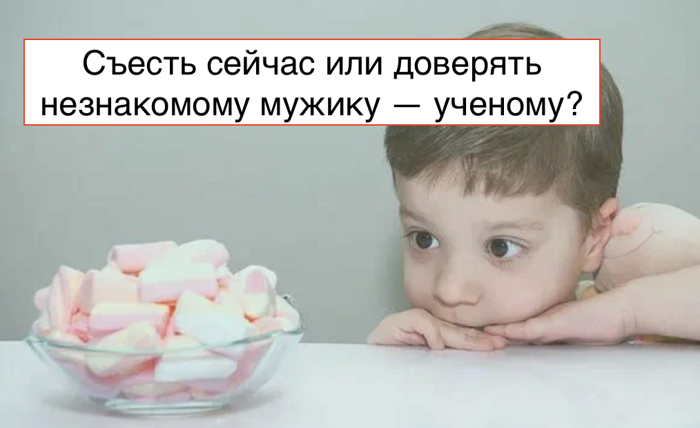 Может быть, вы слышали про зефирный тест, где учёный выясняет, кто из детей обладает самоконтролем.