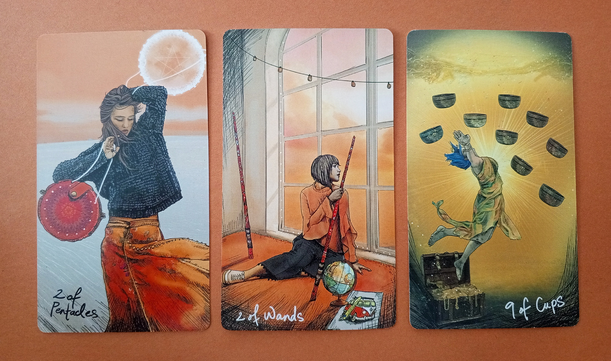 Ох, 2 Пентаклей — это такая карта баланса и жонглирования, когда вы пытаетесь удержать сразу пару шариков в воздухе, а их все больше и больше. Представьте себя на арене цирка, с одной стороны — работа, с другой — личная жизнь, третья — хобби, четвертая — какие-то домашние дела, и вы прыгаете от одного к другому, пытаясь не уронить ни один шарик.