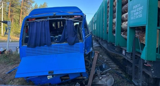 Кадры с места столкновения автобуса и поезда в Ленобласти