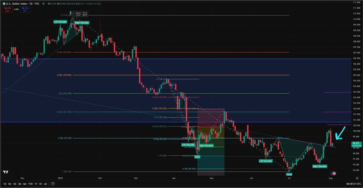 Как и прогнозировалось на вчерашнем обзоре, индекс доллара следует сценарию "Перевернутая Голова и Плечи