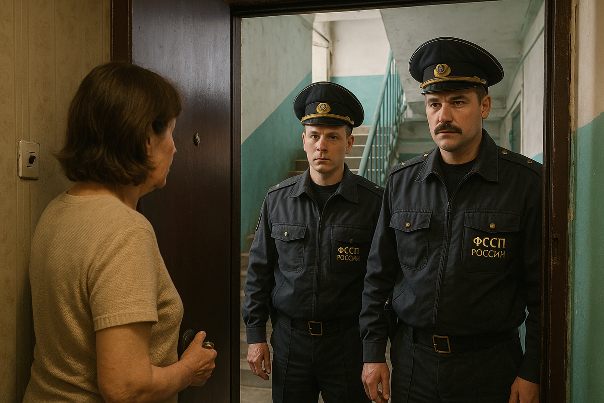 Через несколько дней или даже часов появляются “приставы” — мужчины в форме (пошитой, как правило, на заказ, максимально похожей на форму ФССП). У них есть ксива, похожая на настоящее удостоверение, и небрежно оформленные документы, распечатанные на домашнем принтере. Вежливо, но настойчиво просят открыть дверь и “решить вопрос на месте, чтобы не доводить до ареста имущества”. - Давление и шантаж.