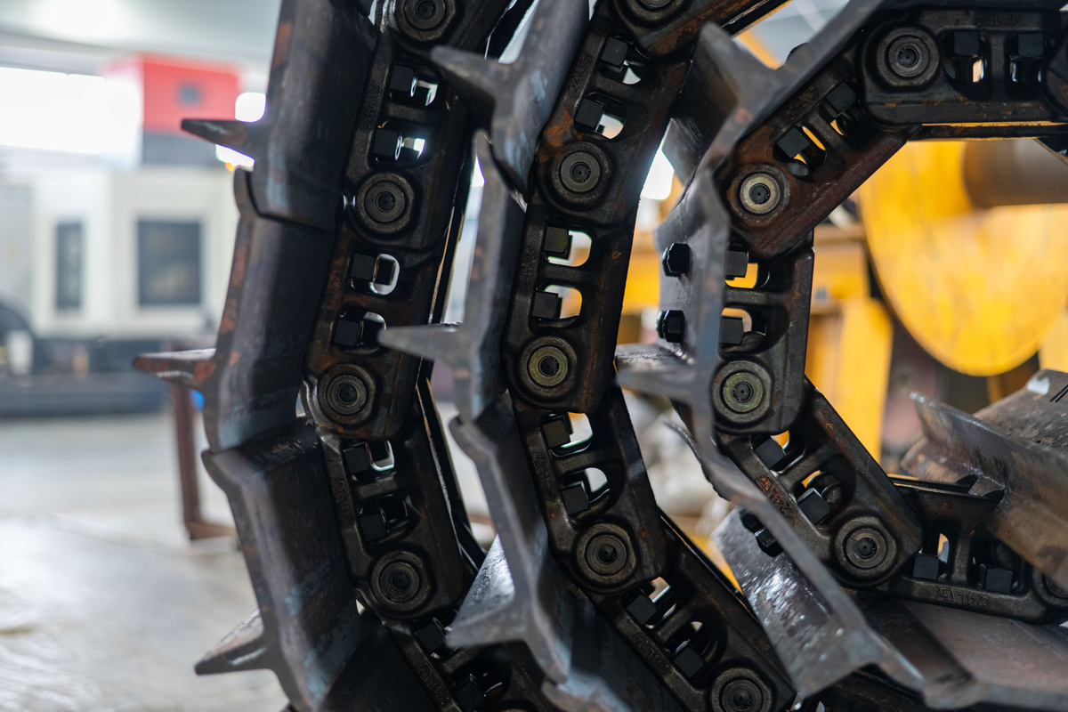 1. Серьезные повреждения гусеницы (большие трещины в звеньях, сильный износ многих втулок и пальцев звеньев);
