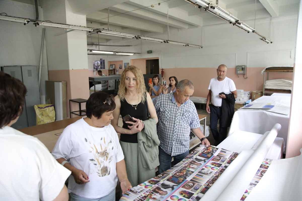 Гости ознакомились с работой различных цехов и специализированной техники—ризографами, плоттерами и другим оборудованием.