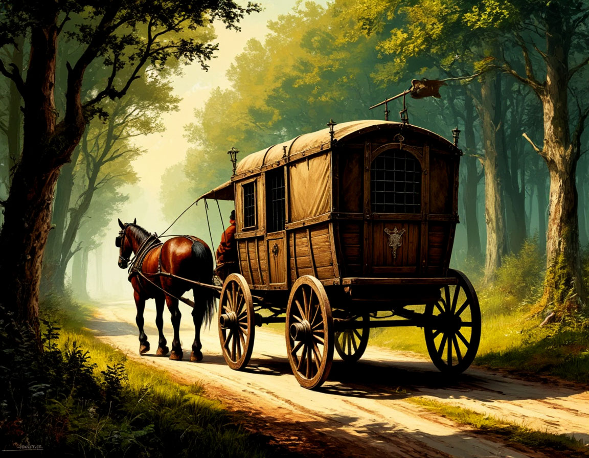 Кучер — мужик бывалый, но и у него губы побелели. Он лупит лошадь по крупу, и скрипучая повозка трогается с места. Колёса жалобно визжат на каждом ухабе, но всё-таки катятся вперёд — к спасению или к новым неприятностям, кто ж его знает.