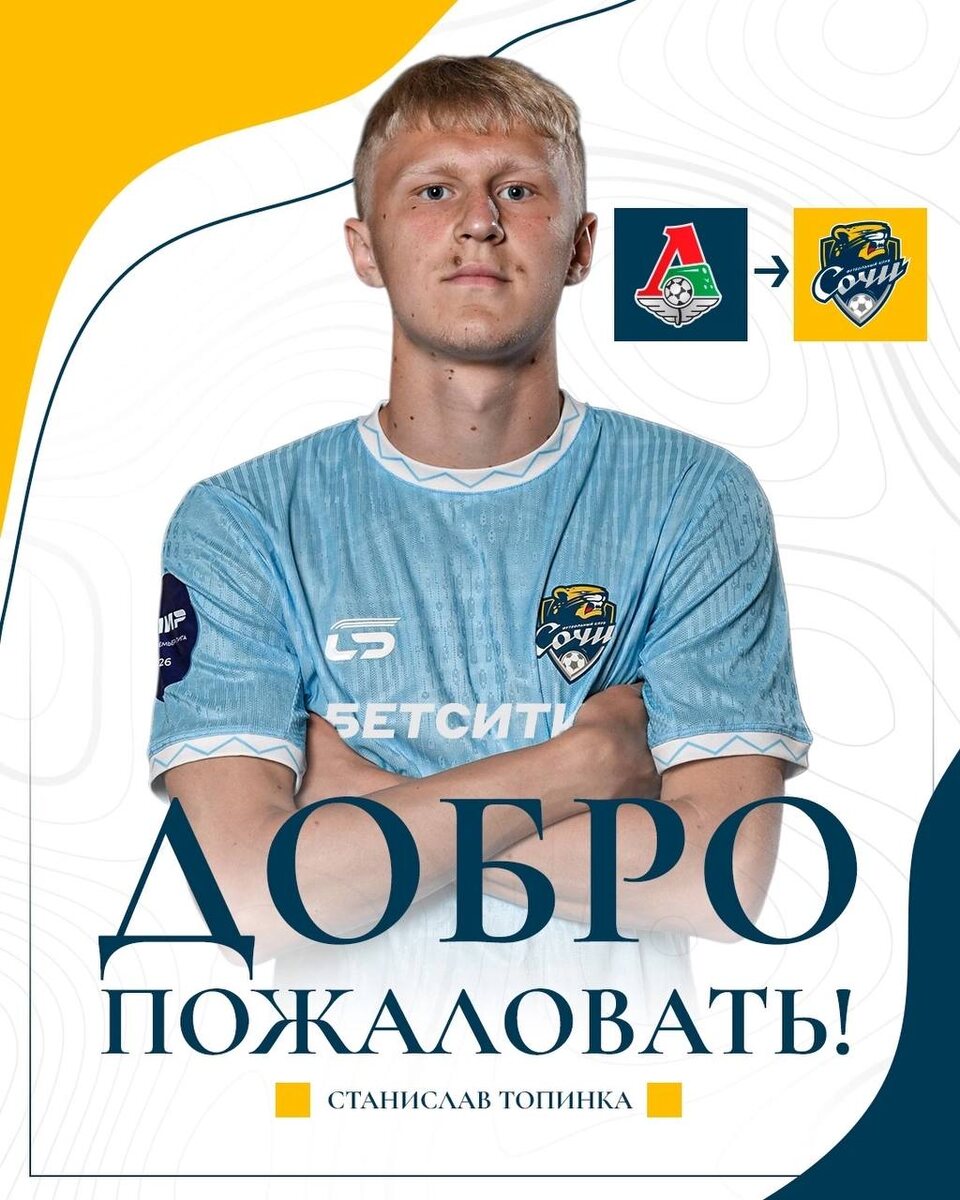 🚨 Полузащитник Станислав Топинка перешел из футбольного клуба «Локомотив» в «Сочи».