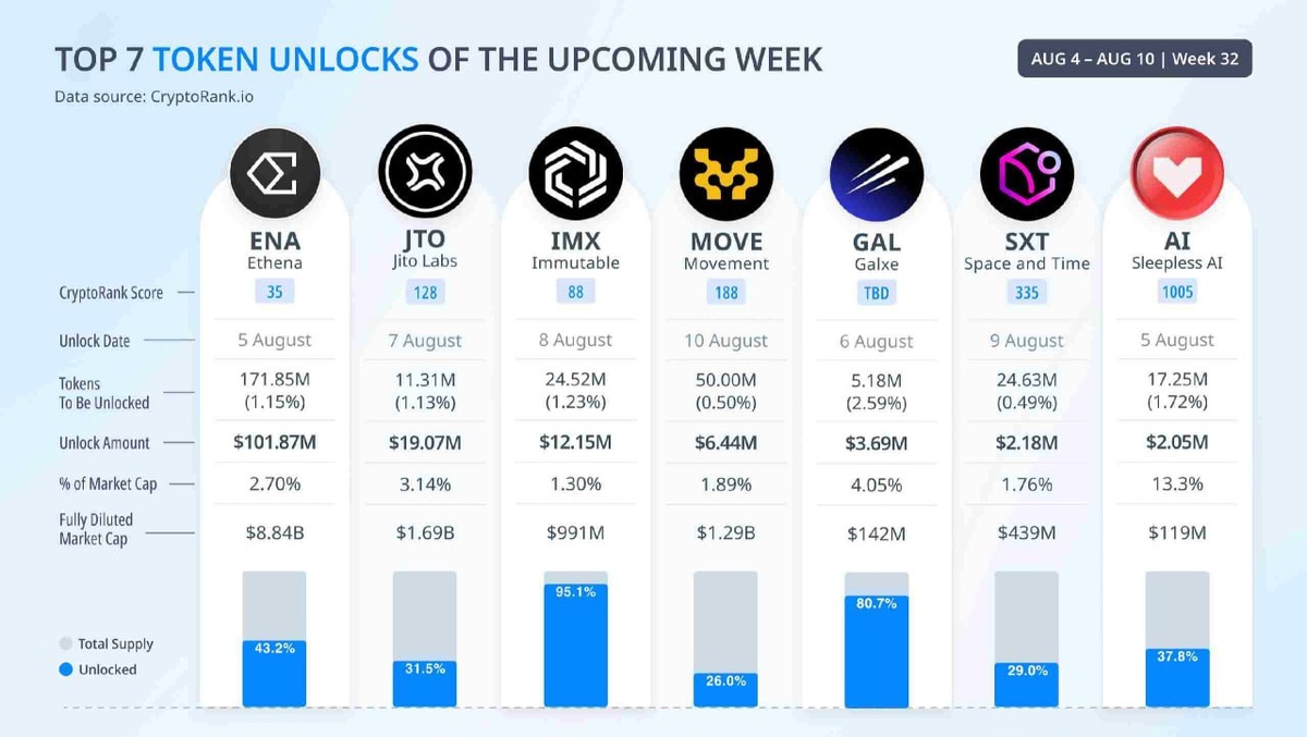 🔸Топ 7 токенов, которые разблокируют на этой неделе