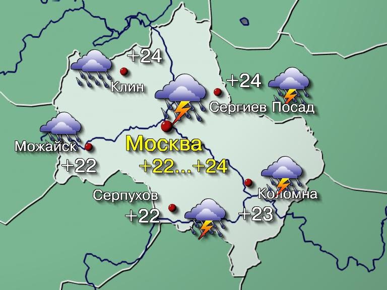 Сегодня погоду в столичном регионе сформирует северная периферия активного циклона, центр которого в середине дня окажется над югом Черноземья. Он закроет небо плотными облаками, около полудня придут дожди, которые временами будут носить ливневой характер и сопровождаться грозами, что ограничит дневной прогрев. В такой ситуации только в течение дня в регионе может выпасть от трети до половины от месячной нормы дождей.
