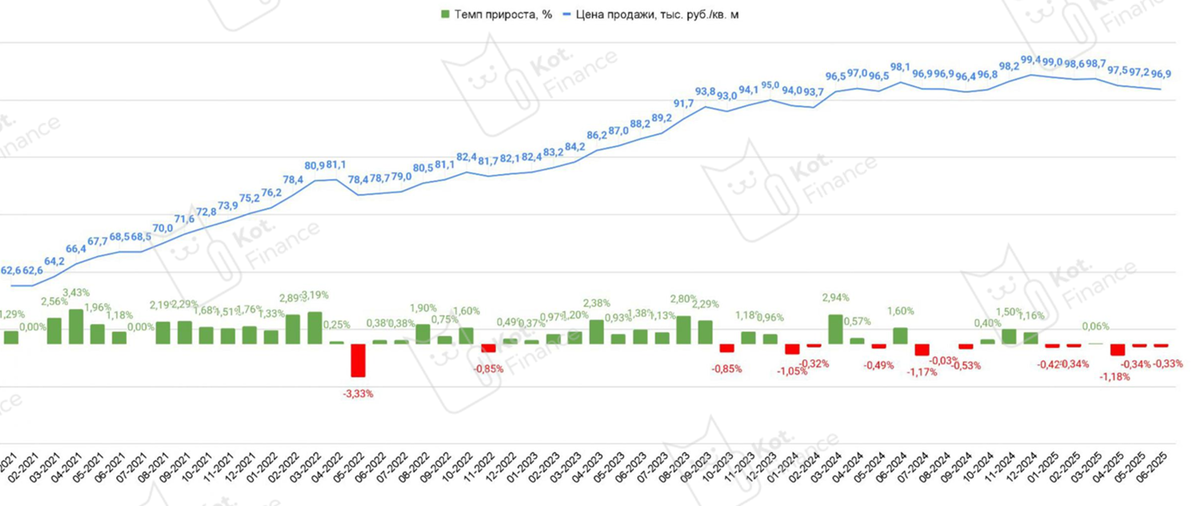 🔹продажи новостроек: -26% г/г (до 10,4 млн кв. м)