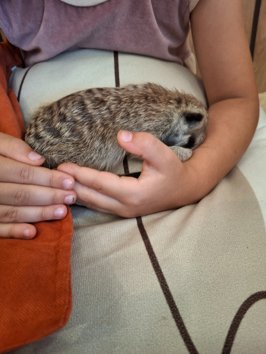 Первое в Москве кафе с сурикатами "Хата суриката" находится рядом с м. Таганская на ул. Народная д.4с1. Здесь можно отдохнуть, пообщаться с милыми сурикатами и поиграть в настольные игры с друзьями. Слоты на общение с сурикатами лучше бронировать заранее. Без брони есть вероятность, что не окажется свободных мест. Мы приехали к своему забронированному времени. Нам обработали руки антисептиком и рассказали правила поведения: 📌 нельзя сурикатов поднимать высоко 📌 нельзя удерживать малышей против воли. Мы пришли к ним в гости и должны в первую очередь учитывать желания сурикатов. 📌 брать в руки разрешается только взрослым. Т.е. взрослый может поднять суриката и положить на колени к своему ребенку. Сурикаты оказались очень общительные и контактные животные, сами с удовольствием залезают на человека. Под конец наши сурикатики так устали, что даже заснули на руках у дочек. Самый маленький, как ребенок, прям выключился без сил, а дочь его бережно обнимала и гладила. В кафе нескол