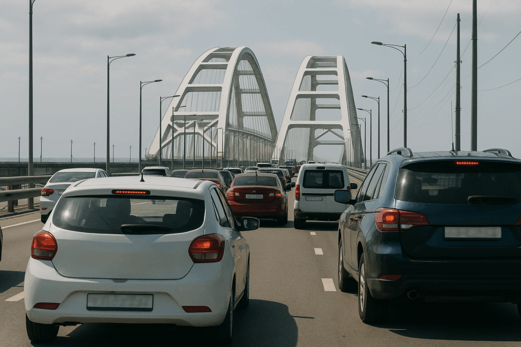 Ситуация с очередями на Крымский мост сохраняет свою напряженность. На 8:00 утра 4 августа на стороне Тамани образовалась пробка длиной более 1800 автомобилей. Время ожидания на ручной досмотр превышает три часа. Тем временем, со стороны Керчи очереди на пункт досмотра отсутствуют, что облегчает процесс пересечения моста для водителей, направляющихся в сторону Краснодарского края. Вечером 3 августа время ожидания на досмотр перед Крымским мостом составляло около пяти часов.