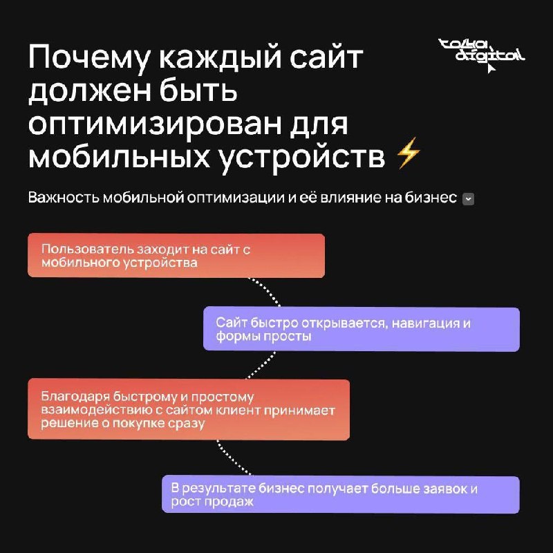Почему каждый сайт должен быть оптимизирован для мобильных устройств ⚡️ В 2025 году многие компании всё ещё считают, что мобильная версия сайта им не нужна: «Наши клиенты работают только с компьютеров». Такой подход приводит к потере клиентов и заявок. Что происходит на рынке сейчас — Уже более половины всего интернет-трафика приходится на мобильные устройства. Даже в B2B-сегменте топ-менеджеры и специалисты принимают решения «на ходу», просматривают сайты поставщиков с телефона — в дороге, на встречах, дома. — Поисковые системы, такие как Google и Яндекс, понижают в выдаче сайты, которые не оптимизированы под мобильные устройства. Это значит, что вы теряете органический трафик, даже если у вас сильное предложение. — Сайт, который неудобен на смартфоне, теряет доверие пользователя ещё до того, как он узнает о ваших преимуществах. Типичные проблемы неадаптированных сайтов: — Долгая загрузка или «разъезжающийся» интерфейс — вкладка закрывается за секунды. — Формы заявки неудобны, кноп
