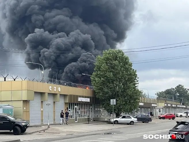 Андрей Прошунин и спасатели борются с огнем после атаки БПЛА в Адлере