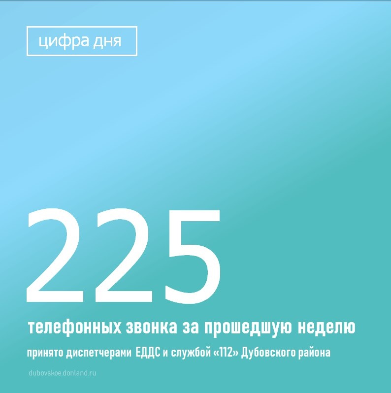 За период с 28.07.2025 по 04.08.2025 дежурными сменами Единой дежурно-диспетчерской службы Дубовского района всего было принято 225 вызова