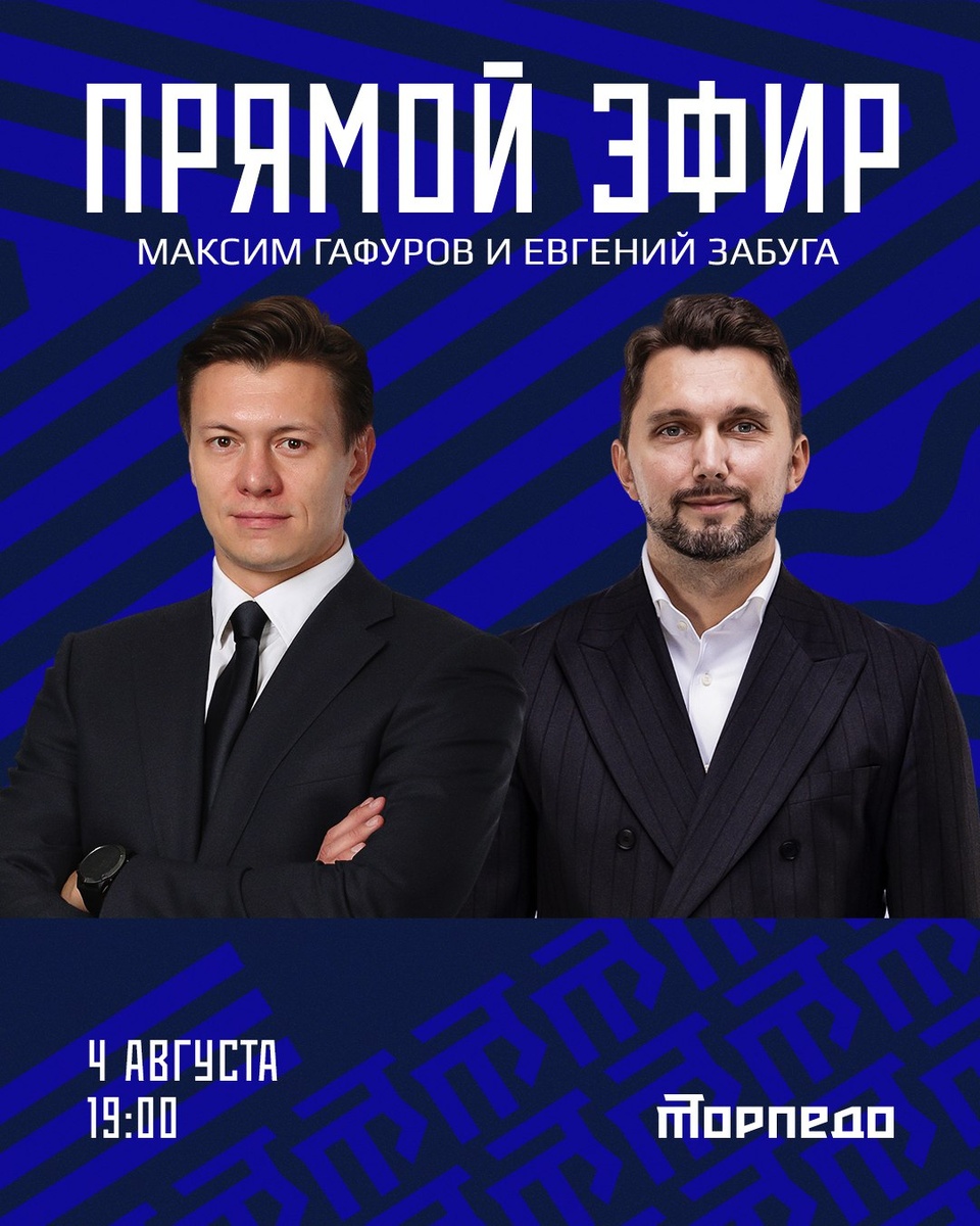 4 августа в 19:00 в нашем Telegram-канале вы сможете задать свои вопросы председателю правления ХК «Торпедо» Максиму Гафурову и генеральному директору клуба Евгению Забуге.