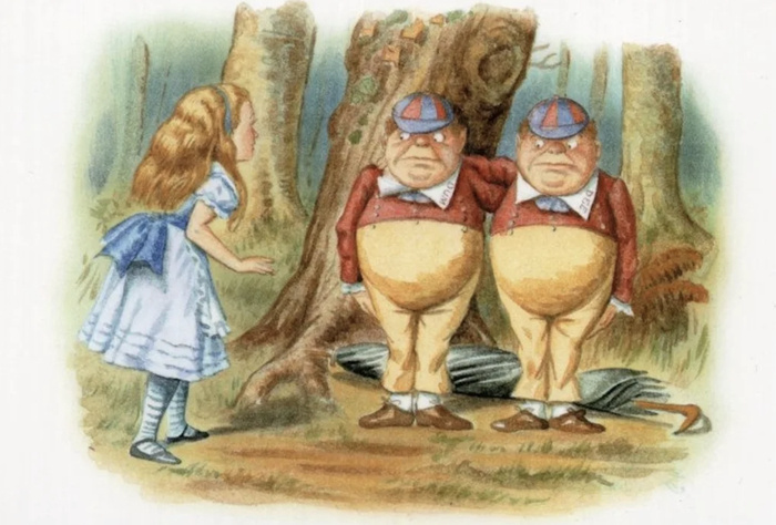 А знаете ли вы, что даже такие "несерьёзные" персонажи мировой литературы, как братья-близнецы Траляля и Труляля (Tweedle-dee и Tweedle-dum по-английски) имеют исторических прототипов, да ещё каких серьёзных! По крайней мере, на наш современный взгляд...