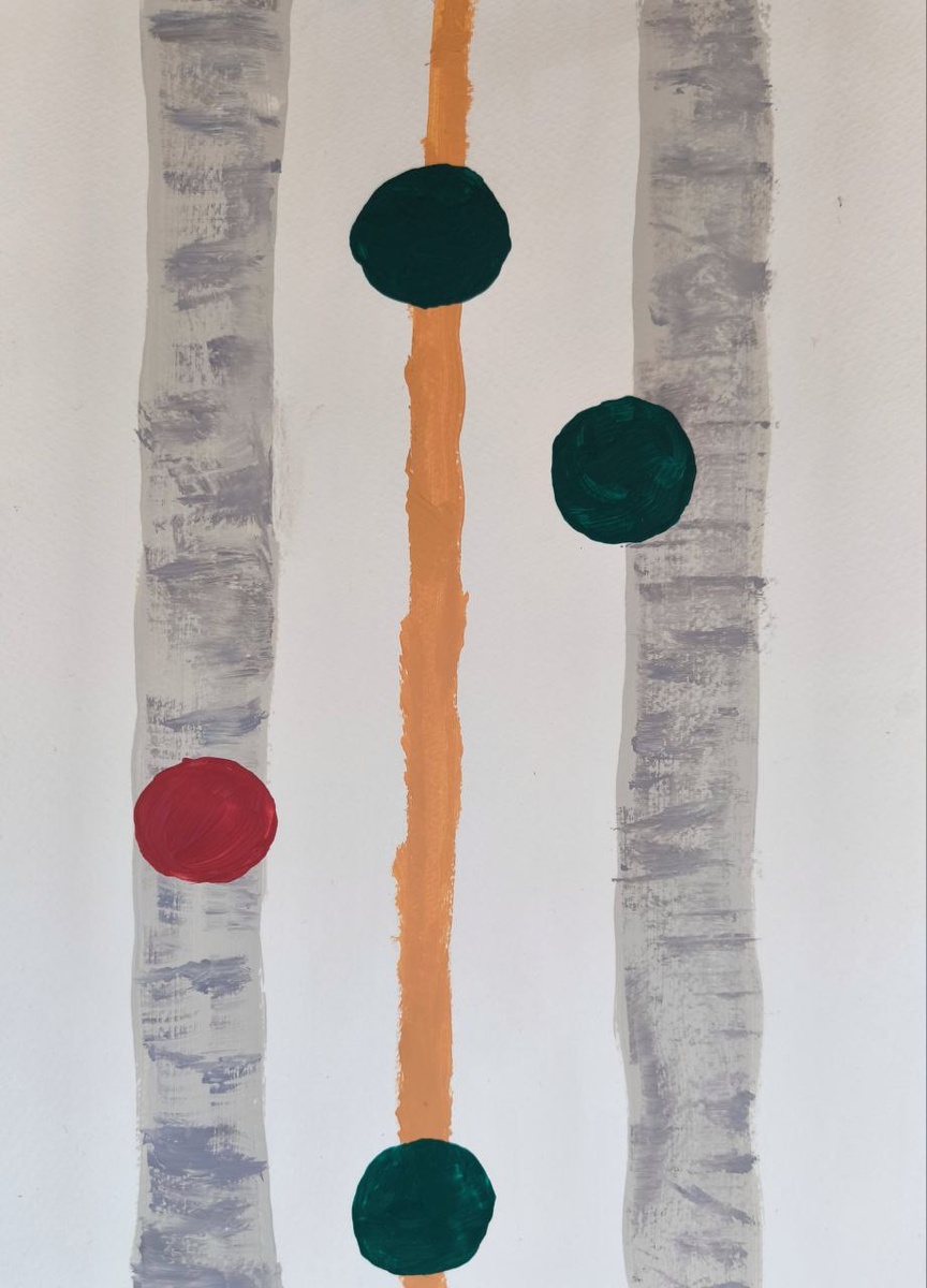 Берёза в пустыне: серия, которой быть не должно 🌿 Берёза в пустыне — звучит как ошибка географии, но я в это поверила и... написала три картины. Когда в голове шумят ветви северных деревьев, а за окном +38 и песок в тапках, рождается нечто странное, яркое и живое. Именно так и появилась эта трилогия. Каждая работа — как будто часть одного сна, где берёзы попали туда, где их быть не должно. 🎨 Первая — «Шифр пустыни» (первая картинка — с геометрией и кругами) Берёзы как коды, шорох листвы — как азбука. Цвета сухие, сдержанные, но с сюрпризом. Зелёный и алый кружки — как странные спутники, может быть, плоды, может — глаза наблюдателя. Не спрашивайте, что это. Лучше спросите, почему это так красиво не объясняется? 😄 🎨 Вторая — «Берёзы не сдаются» (вторая картина — с тремя деревьями и яркой пустыней) Они реально выживают. Стоят, пушистые, как будто ничего не происходит. А вокруг жар, марево, полная тишина. Почти как мы, когда берёмся за что-то невозможное — и делаем. Потому что кто-